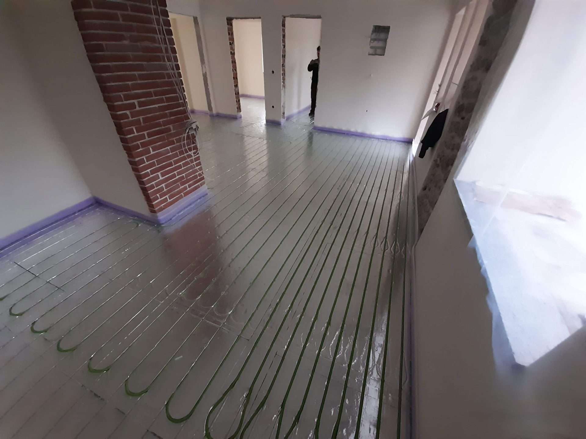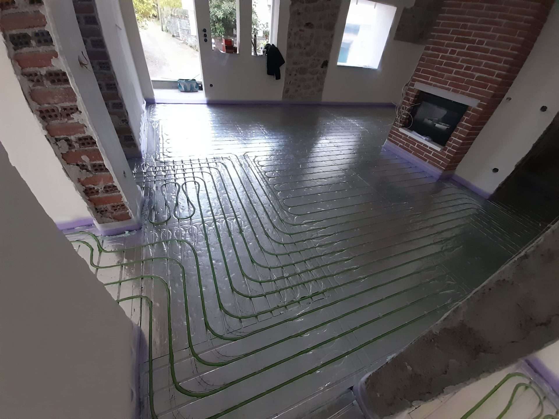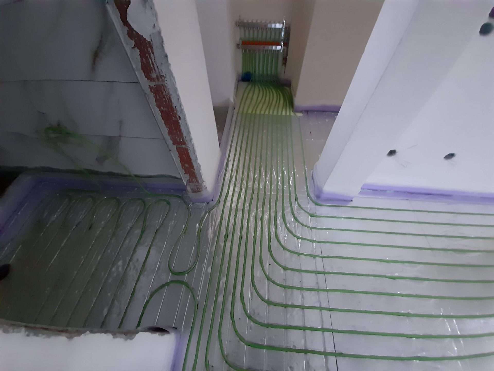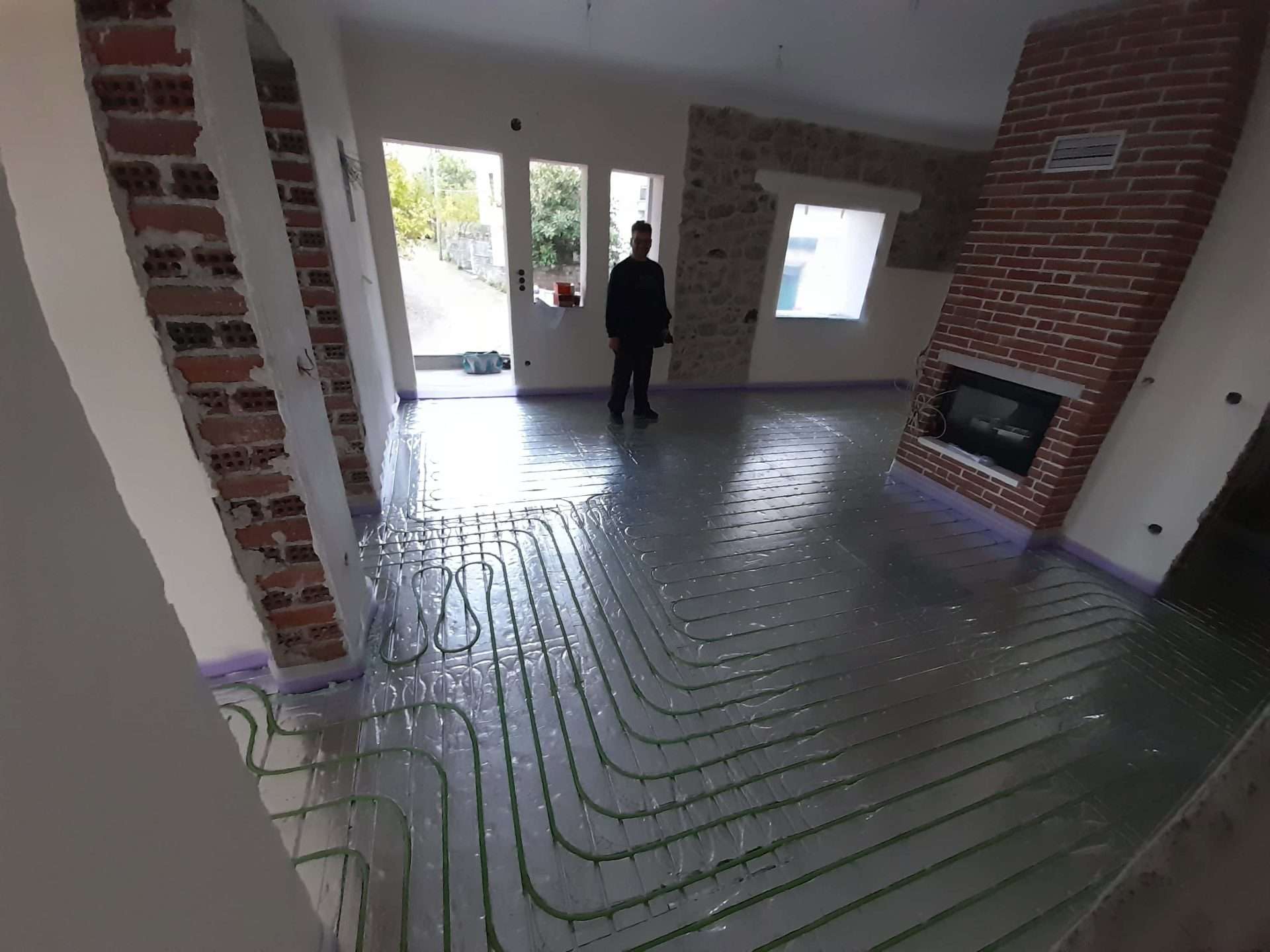 Εφαρμογή συστήματος θέρμανσης δαπέδου ξηρά δομησης σε αναπαλαιωμένη κατοικία πρώτου ορόφου στο Λιτόχωρο Πιερίας. Η τοποθέτηση του συστήματος έγινε πάνω σε ξύλινο δάπεδο το οποίο αποτελείται από ξύλινους δοκούς οι οποίοι εδράζονται στον φέρων οργανισμό του κτιρίου και είναι επενδεδυμένες με ξύλινες πλάκες OSB. Τελική επένδυση δαπέδου πλωτό ξύλινο παρκέ.