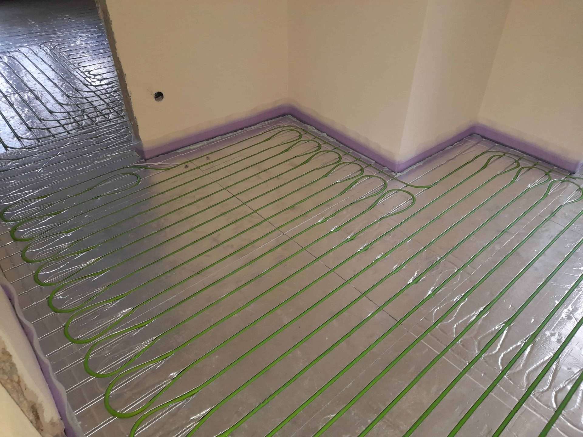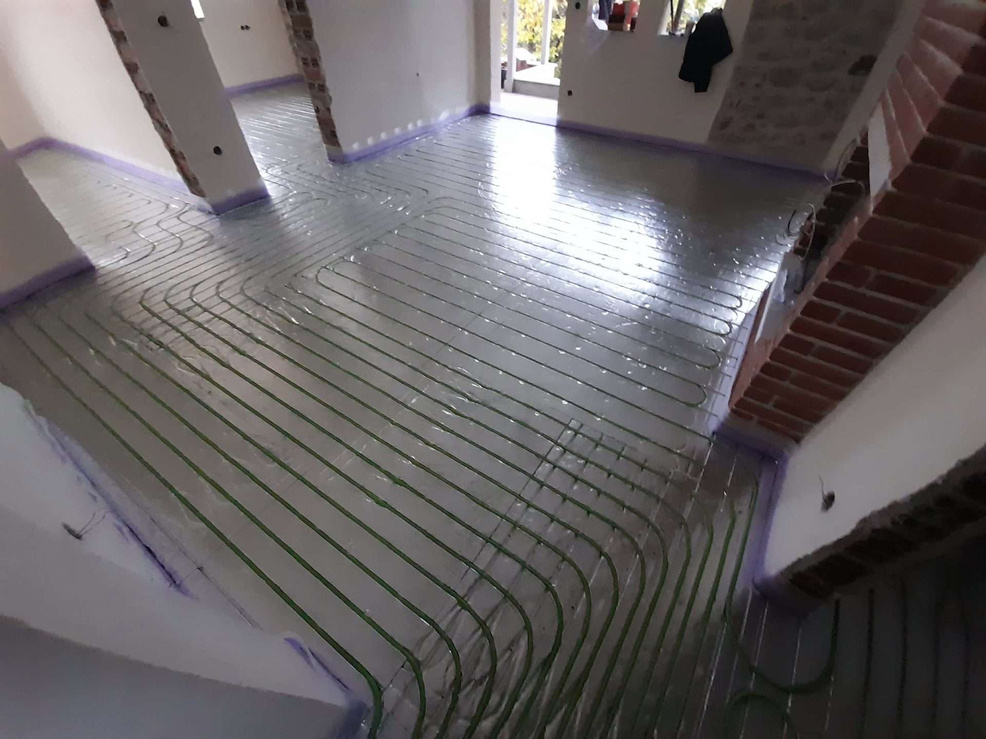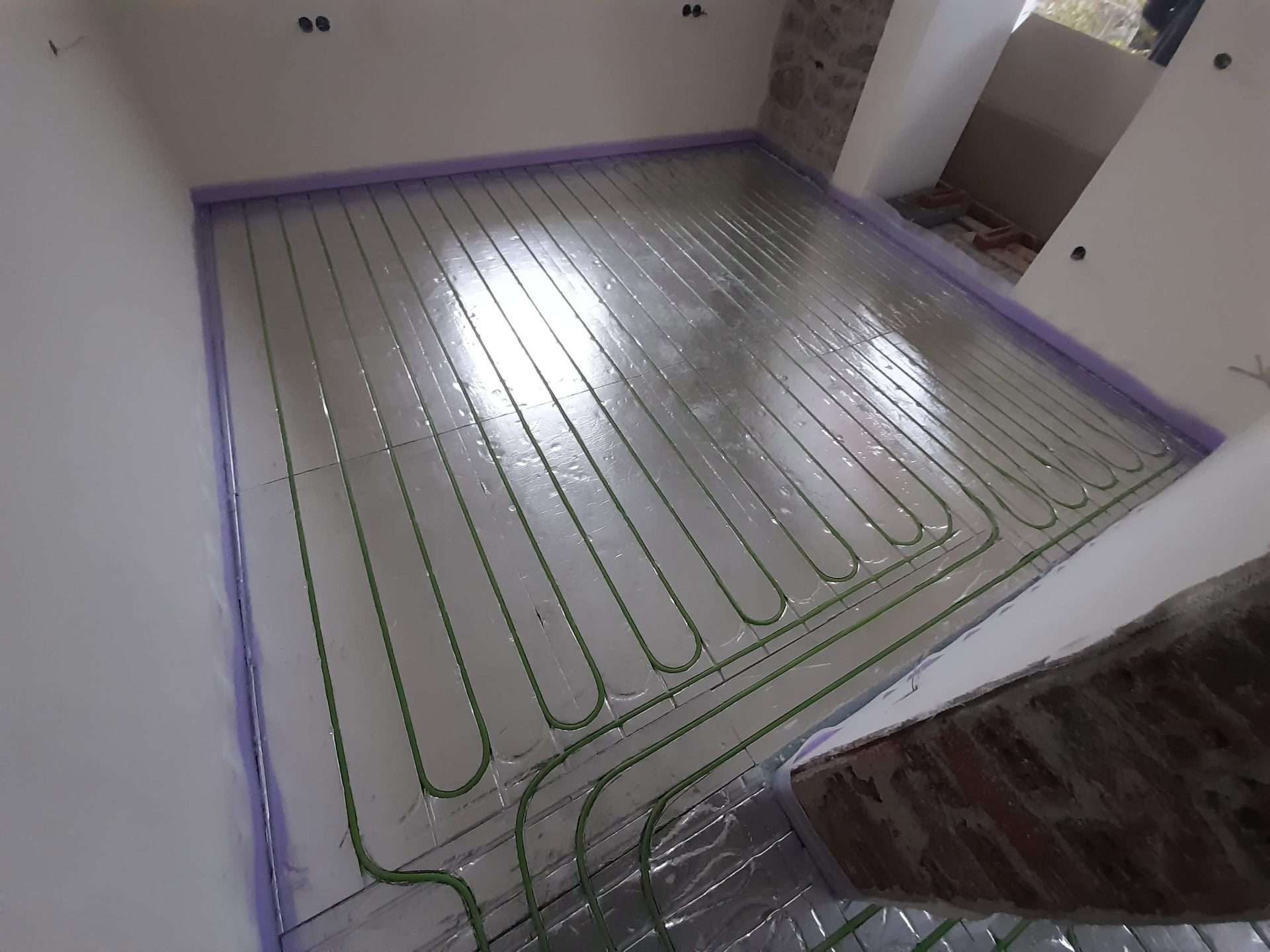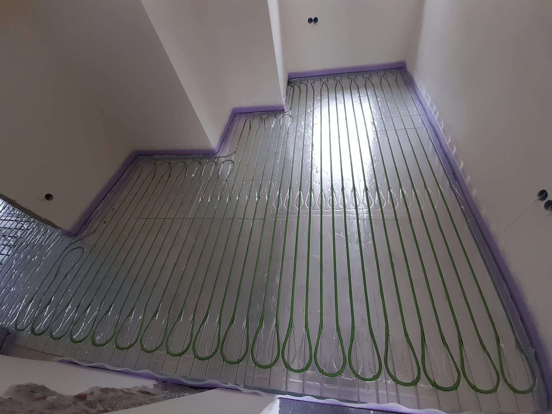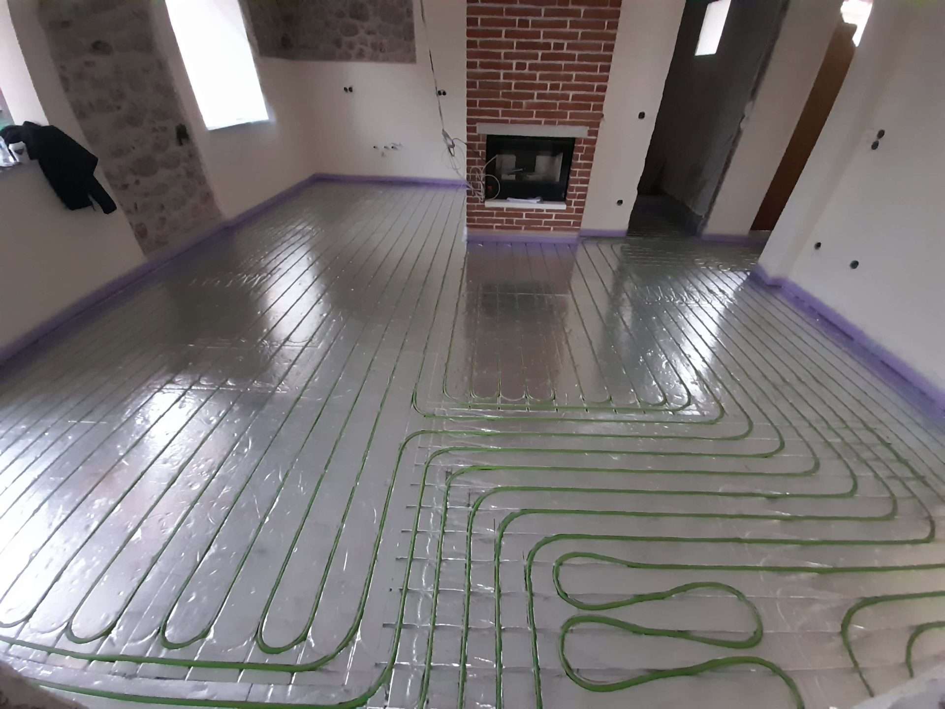 Εφαρμογή συστήματος θέρμανσης δαπέδου ξηρά δομησης σε αναπαλαιωμένη κατοικία πρώτου ορόφου στο Λιτόχωρο Πιερίας. Η τοποθέτηση του συστήματος έγινε πάνω σε ξύλινο δάπεδο το οποίο αποτελείται από ξύλινους δοκούς οι οποίοι εδράζονται στον φέρων οργανισμό του κτιρίου και είναι επενδεδυμένες με ξύλινες πλάκες OSB. Τελική επένδυση δαπέδου πλωτό ξύλινο παρκέ.
